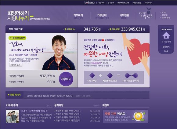 이번 캠페인은 '희망더하기 사랑나누기' 홈페이지(http://donation.betman.co.kr/)를 통해 오는 30일까지 참여할 수 있다.