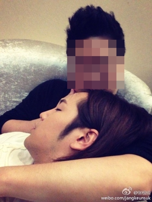 사진 속 장근석은 한 남성의 품에 안겨 눈을 감은 채 잠을 자고 있다.