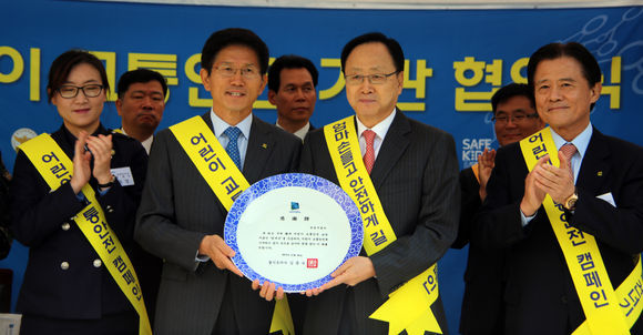 쌍용자동차가 안전한 교통문화 정착 및 어린이 안전사고 예방활동을 위해 경기도를 비롯한 관계 기관과 협약식을 갖고 교통안전 캠페인 후원에 나섰다.