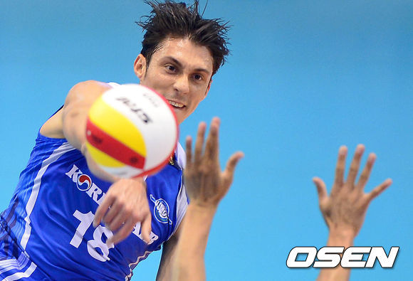 대한항공은 5일 안산상록수체육관에서 열린 NH농협 2013-2014시즌 V리그 경기서 세트스코어 3-1(25-27, 25-18, 25-22, 26-24)로 승리를 거뒀다. 경기는 이겼지만 신생팀을 상대로 어렵게 거둔 말 그대로의 진땀승이었다.