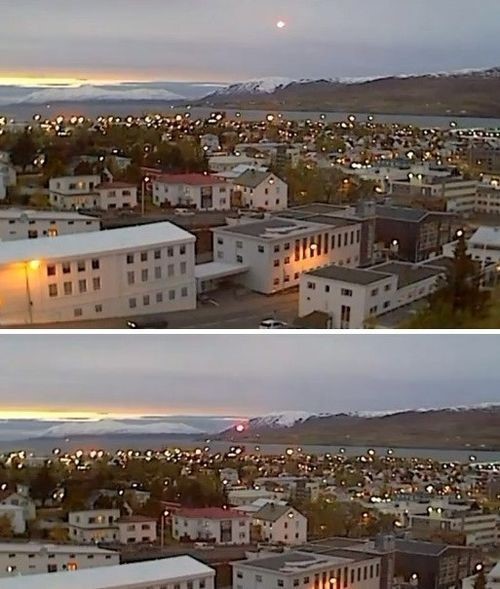 최근 온라인 커뮤니티에는 '하늘에서 내려온 불덩어리'라는 제목의 사진이 올랐다. 이 사진은 아이슬란드 아쿠레이리에의 CCTV에 찍힌 영상을 통해 하늘에서 떨어지는 불덩어리의 모습을 포착한 것을 캡쳐한 것이다.