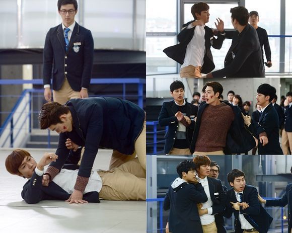 ‘상속자들’의 이민호가 김우빈과 몸싸움을 벌인다.