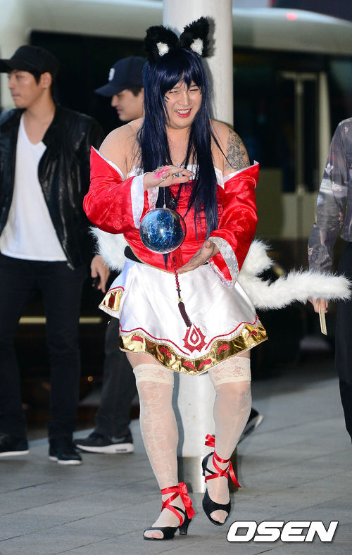 6일 오후 단독 콘서트 '슈퍼쇼5'를 위해 멕시코로 출국하는 슈퍼주니어 신동이 분장을 한 채 인천국제공항에 도착하고 있다.