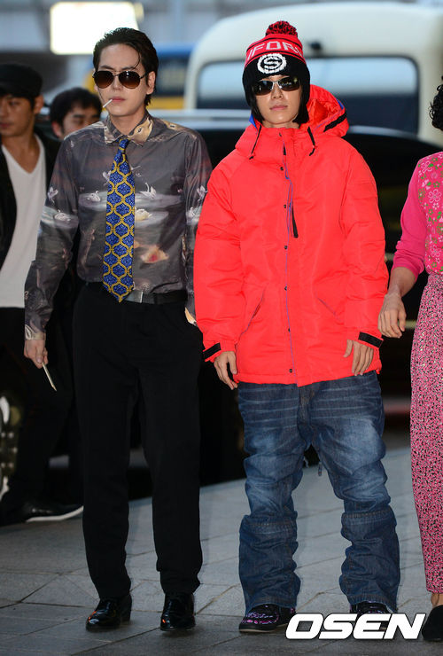 6일 오후 단독 콘서트 '슈퍼쇼5'를 위해 멕시코로 출국하는 슈퍼주니어 규현과 동해가 분장을 한 채 인천국제공항에 도착하고 있다.