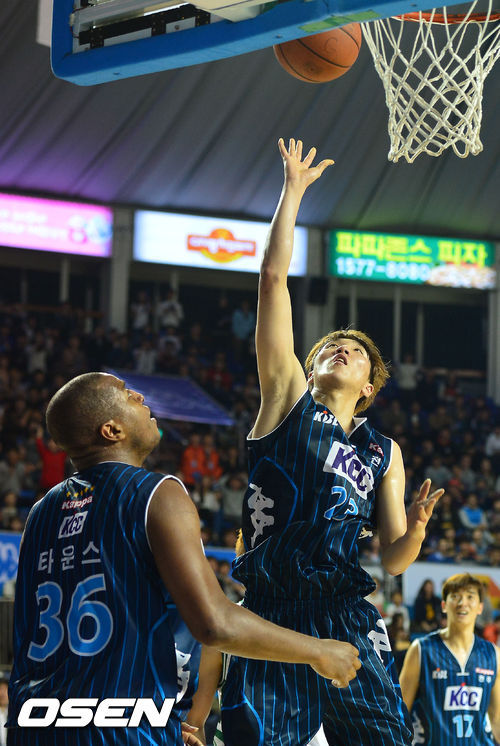 한편 전주에서는 홈팀 KCC(7승 3패)가 연장 혈전 끝에 92-88로 원주 동부(4승 7패)를 제압하고 단독 3위로 뛰어 올랐다. 4연승의 KCC는 김민구가 4쿼터에만 10점을 몰아쳤다. 종료 4.3초를 남기고 터진 3점슛으로 3점을 앞선 KCC는 승리가 눈앞이었다. 이 때 0.2초를 남기고 이광재의 동점 3점슛이 터져 승부는 연장으로 넘어갔다.