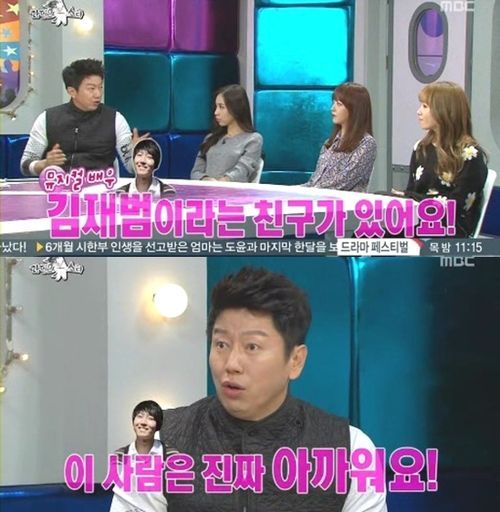 이에 MC들이 “잘 될 거라고 예상했는데 생각보다 안 뜬 배우가 있느냐”고 질문하자, 김수로는 현재 심은진과 함께 연기 중인 김재범을 꼽았다. 그는 “제가 본 연기는 최고다”고 덧붙여 김재범이란 배우에 대해 궁금증을 자아냈다.