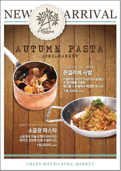 이탈리안 그린 비스트로 에이프릴마켓(대표 이상윤)이 부쩍 쌀쌀해진 날씨에 잘 어울리는 독특한 신메뉴, ‘꼰낄리에 사발’과 ‘소곱창 파스타’ 등 파스타 2종을 출시했다.