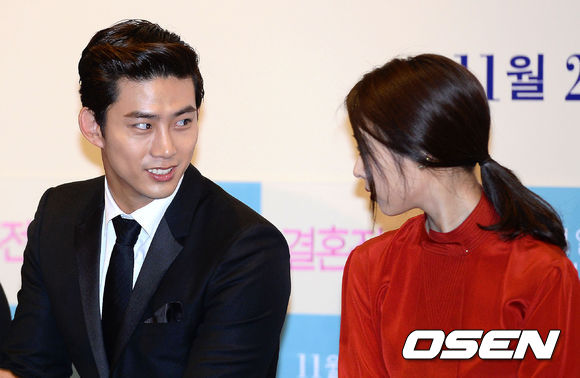 7일 오후 서울 코엑스 메가박스에서 진행된 영화 '결혼전야'(홍지영 감독) 언론배급시사회에서 옥택연이 이연희를 바라보고 있다.