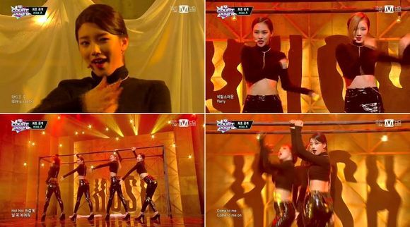 미쓰에이는 7일 방송된 엠넷 '엠카운트다운'에서 지난 6일 발표한 신곡 '허쉬(Hush)'의 컴백무대를 가졌다. 멤버들은 무대 중앙에 설치된 조형물을 이용한 아찔한 '바 댄스'로 섹시미를 한껏 드러냈다.