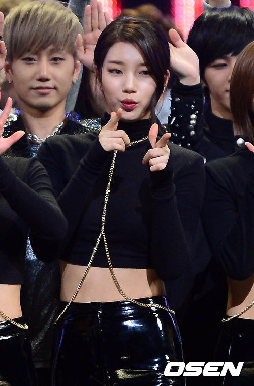 7일 오후 서울 상암동 CJ E&M에서 진행된 Mnet '엠카운트다운'(이하 엠카) 생방송에서 미쓰에이 수지가 팬들에게 인사를 하고 있다.