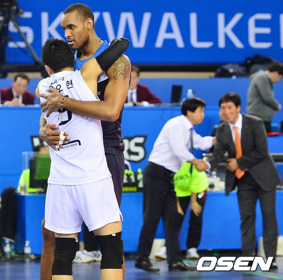 경기를 마치고 현대캐피탈 여오현과 아가메즈가 포옹을 할때 현대캐피탈 김호철 감독과 한국전력 신영철 감독이 악수를 나누고 있다. /rumi@osen.co.kr