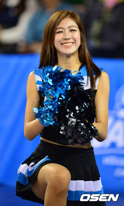 현대캐피탈 김연정 치어리더가 코트 위에서 상큼한 응원을 펼치고 있다. /rumi@osen.co.kr
