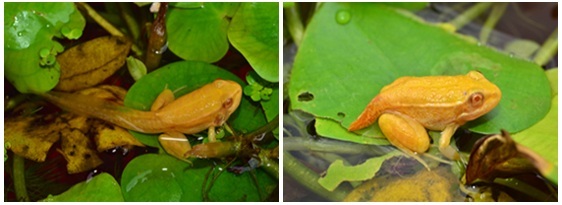 7일 환경부는 흔히 ‘알비노’라고 불리는 백색증으로 인해 황금색을 띄는 매우 희귀한 참개구리 두 마리가 국내 습지에서 발견됐다고 밝혔다.