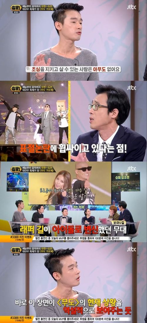 이에 김희철은 “무도빠로서 이번이 제일 별로였다. 이번 가요제에서 가장 아쉬웠던 게 힙합무대에서는 정말 멋진 길의 매력을 제대로 보여주지 못한 거다”고 지적했다.