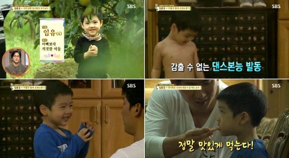 가수 슈의 아들 임유 군이 깜찍한 D라인 몸매와 왕성한 식욕 등으로 씩씩한 모습을 보였다.