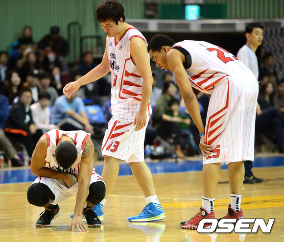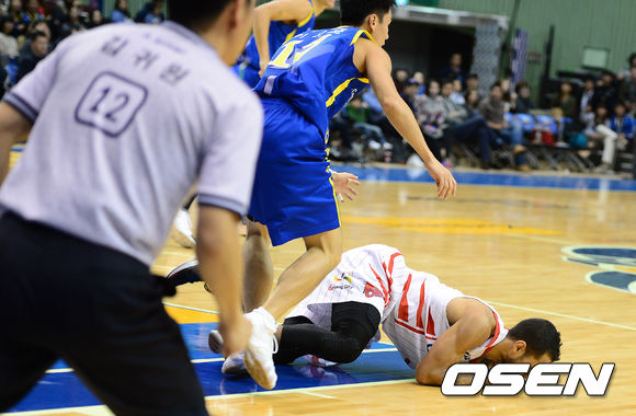 입술을 부여잡고 넘어진 전태풍, '심판님, 반칙 보셨죠?'