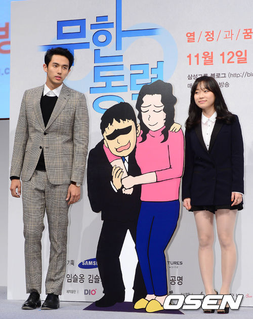 8일 오후 서울 서초동 삼성전자 서초사옥에서 열린 SNS 드라마 '무한동력' 미디어데이에서 임슬옹과 김슬기가 포토타임을 갖고 있다.