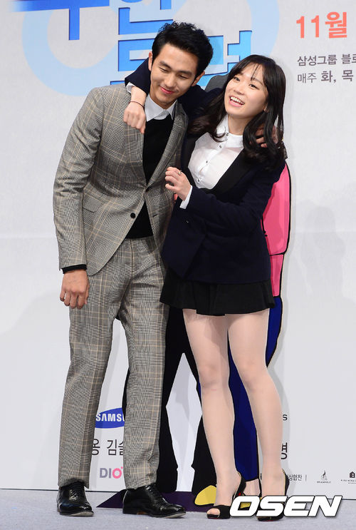 8일 오후 서울 서초동 삼성전자 서초사옥에서 열린 SNS 드라마 '무한동력' 미디어데이에서 임슬옹과 김슬기가 포토타임을 갖고 있다.