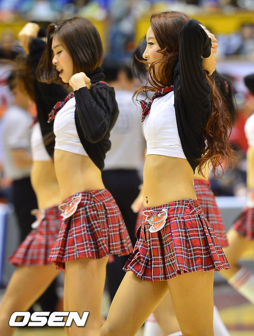 KT 치어리더들이 코트 위에서 화려한 공연을 펼치고 있다.