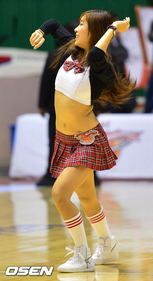 KT 치어리더들이 코트 위에서 화려한 공연을 펼치고 있다.