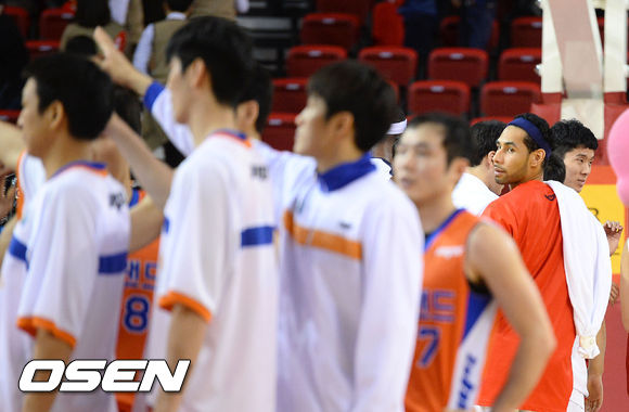 경기종료, 모비스 문태영이 전자랜드 선수들을 바라보고 있다. /ouxou@osen.co.kr