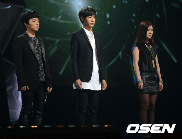 8일 오후 서울 경희대 평화의 전당에서 진행된 엠넷 '슈퍼스타K5' TOP3 생방송 공연에서 박시환, 박재정, 송흐진이 심사위원의 점수를 기다리고 있다.
