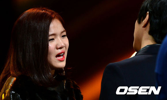 8일 오후 서울 경희대 평화의 전당에서 진행된 엠넷 '슈퍼스타K5' TOP3 생방송 공연에서 탈락한 송희진이 박시환과 이야기를 나누고 있다.