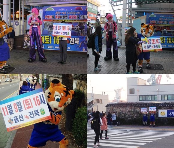 K리그 클래식 울산 현대가 두 번의 홈경기를 남기고 팬들에게 더 가까이 다가가기 위해 구단 사무국 직원 모두가 직접 거리로 나서서 다양한 거리홍보를 실시했다.