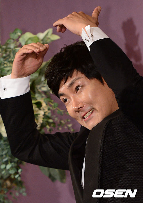 결혼식에 앞서 조진웅이 기자회견을 하며 포즈를 취하고 있다.
