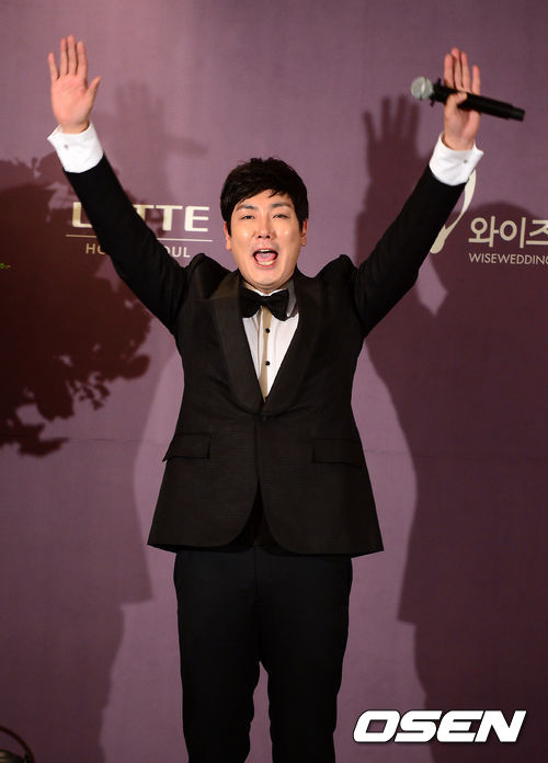 결혼식에 앞서 조진웅이 기자회견을 하며 포즈를 취하고 있다.
