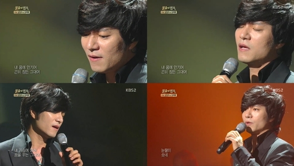 임태경은 9일 오후 방송된 KBS 2TV 예능프로그램 '불후의 명곡-전설을 노래하다'에서 가수 김정수의 '당신'을 열창했다.