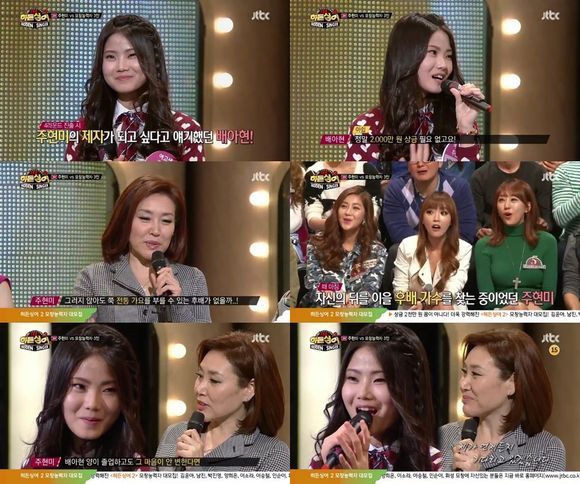 이에 MC 전현무는 주현미에게 "배아현 양의 기회가 날아갔다. 어떻게 말을 하실지 궁금하다"라고 물었고 주현미는 "마침 전통가요를 부를 후배가수가 없을까 생각하고 있었다"라면서 "졸업할때까지 그 마음이 변하지 않는다면 언제든지 기다리고 있겠다"라고 말해 모두의 박수갈채를 받았다.