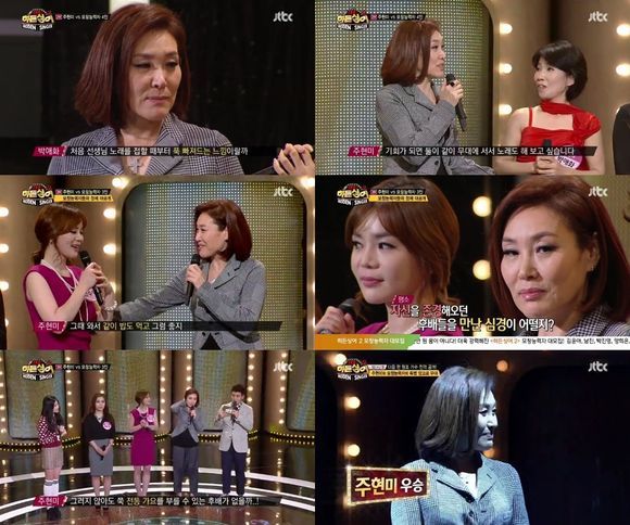 주현미는 9일 오후 방송된 JTBC '히든싱어2'에서 쟁쟁한 모창 능력자들을 제치고 최종 우승을 차지했다.