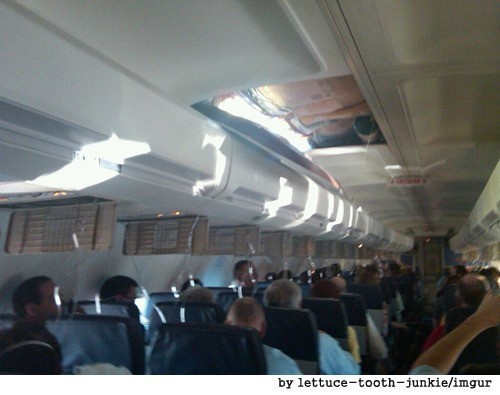 사진 속 비행기는 말 그대로 '지붕 뚫린 비행기'였다. 미국 피닉스서 새크라멘토로 향하던 이 비행기는 3만 6000 피트(약 11km) 상공에서 굉음과 함께 지붕이 뚫렸다고 한다. 결국 비행기는 사고 직후 비상착륙을 했고, 승객들은 무사히 땅을 밟았다.