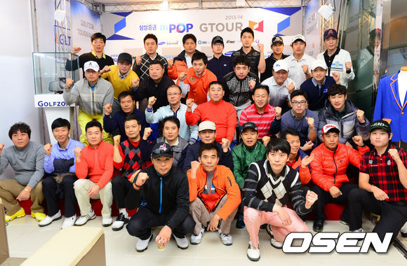 10일 오전 경기도 시흥 화인 비전 스크린에서 진행된 '2013-14 삼성증권 mPOP GTOUR 윈터시즌 1차대회 결선 2라운드(아델스코트 파72,6,571m)에 앞서 출전 선수들이 포즈를 취하고 있다.
