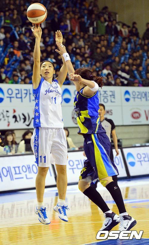 10일 오후 춘천 호반체육관에서 '우리은행 2013-2014 여자프로농구' 개막전 우리은행 한새와 신한은행 에스버드의 경기가 열렸다.