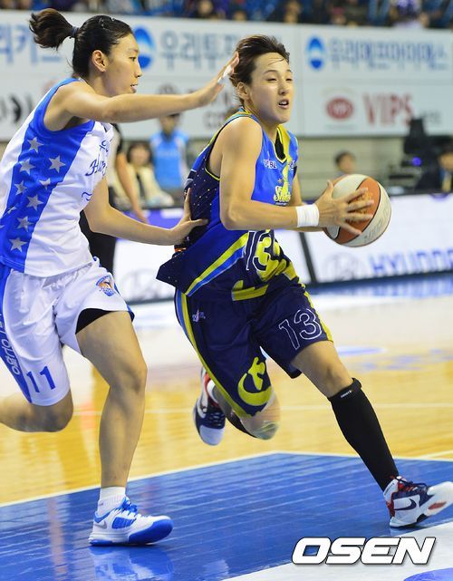 우리은행은 10일 오후 춘천호반체육관서 열린 우리은행 2013-2014 여자프로농구 개막전서 신한은행을 85-79로 제압했다.