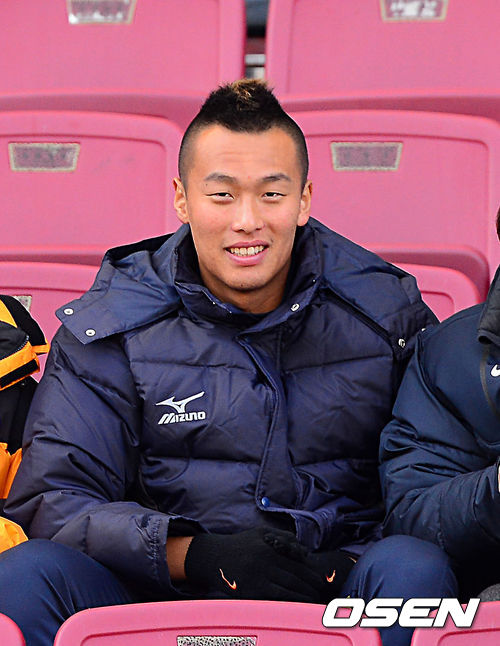 10일 오후 수원월드컵경기장에서 현대오일뱅크 K리그 클래식 2013 수원 삼성과 포항 스틸러스의 경기, 경기관전을 온 울산 현대 김신욱이 미소짓고 있다.