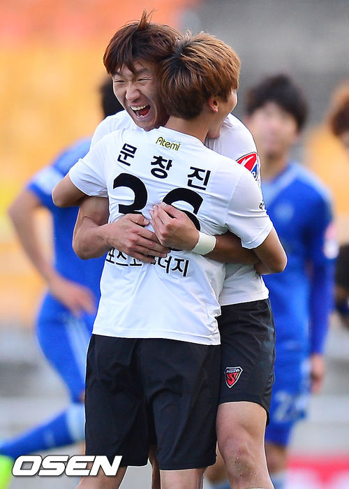 경기를 마치고 결승 골을 넣은 포항 고무열을 문창진과 기쁨을 나누고 있다. / rumi@osen.co.kr