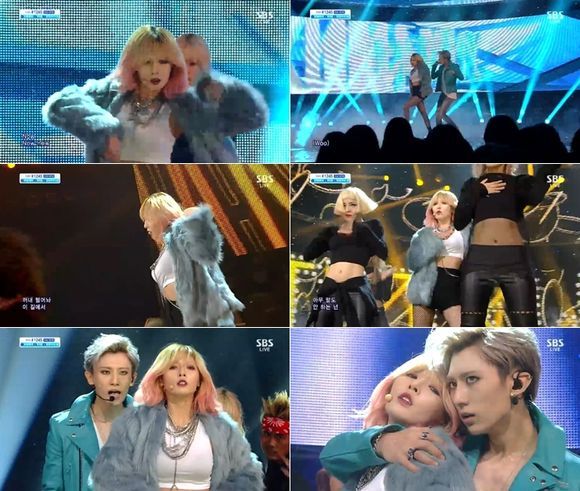 트러블메이커는 10일 오후 방송된 SBS '인기가요'에서 '내일은 없어'로 화려한 무대를 선사했다.
