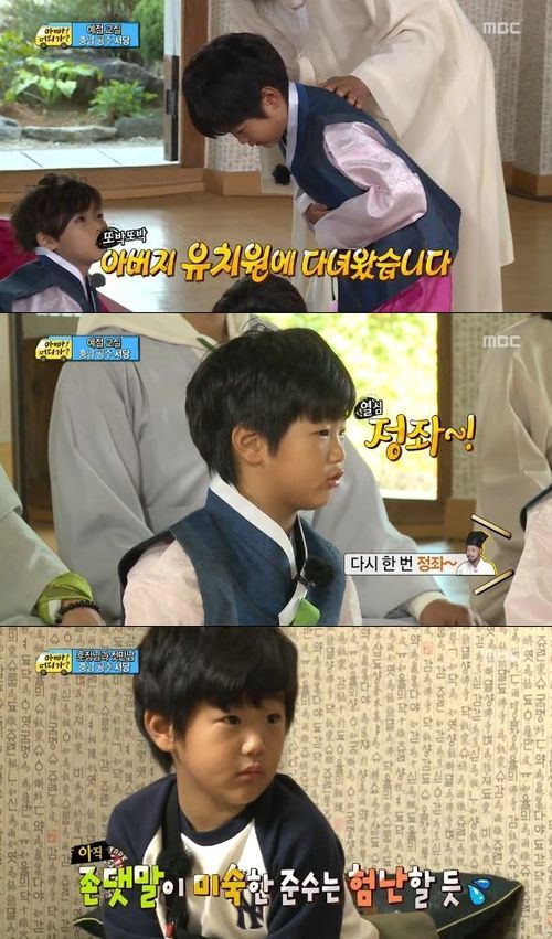 이날 이준수는 서당 입문부터 훈장님에게 폭풍 지적을 받았다. 존댓말에 익숙하지 않은 것과 더불어 어른들 앞을 함부로 지나다녔기 때문. 이에 이종혁은 지적받는 아들의 모습에 좌불안석이다가도 훈장님의 지적에 예의범절을 알아가는 준수의 모습에 흐뭇한 미소를 짓기도 했다.