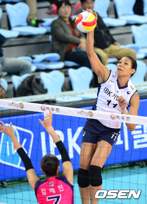 10일 오후 인천계양체육관에서 열린 '2013-2014 NH농협 V리그' 여자부 흥국생명과 IBK기업은행의 경기 1세트 카리나가 공격을 시도하고 있다.
