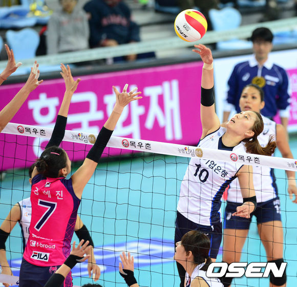 10일 오후 인천계양체육관에서 열린 '2013-2014 NH농협 V리그' 여자부 흥국생명과 IBK기업은행의 경기 1세트 박정아가 공격을 시도하고 있다.