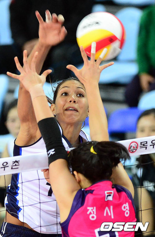 10일 오후 인천계양체육관에서 열린 '2013-2014 NH농협 V리그' 여자부 흥국생명과 IBK기업은행의 경기 1세트 카리나가 공격을 시도하고 있다.