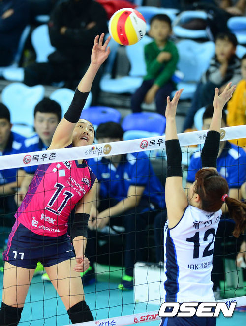 10일 오후 인천계양체육관에서 열린 '2013-2014 NH농협 V리그' 여자부 흥국생명과 IBK기업은행의 경기 2세트 윤혜숙이 공격을 시도하고 있다.