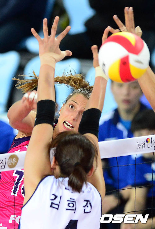 10일 오후 인천계양체육관에서 열린 '2013-2014 NH농협 V리그' 여자부 흥국생명과 IBK기업은행의 경기 2세트 바실레바가 공격을 시도하고 있다.