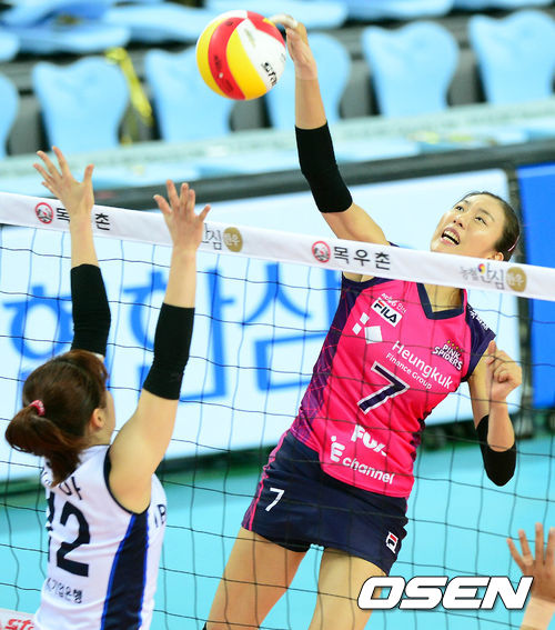 10일 오후 인천계양체육관에서 열린 '2013-2014 NH농협 V리그' 여자부 흥국생명과 IBK기업은행의 경기 2세트 김혜진이 공격을 시도하고 있다.