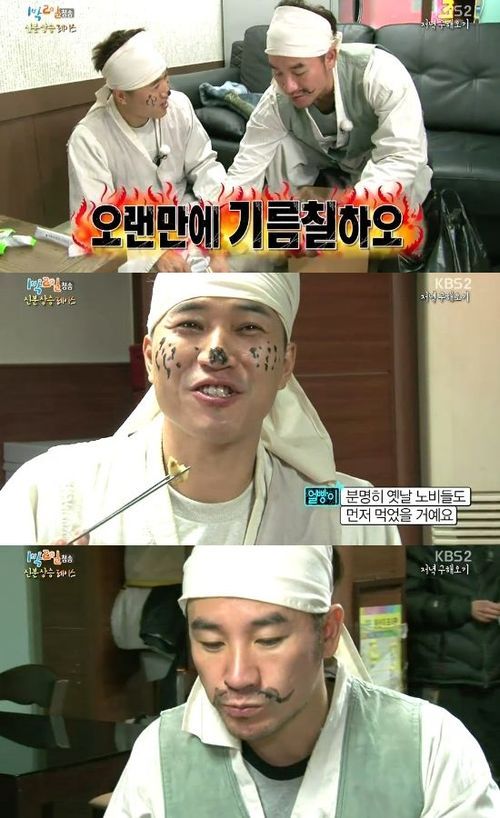 그러나 이들은 충실한 노비와는 거리가 멀었다. 보쌈과 함께 제공된 전을 먹으며 "이 전은 없는 거다"고 일을 꾸몄다. 보쌈 또한 "뜨겁다 보니 비닐에 구멍이 난다"면서 하나, 둘식 집어먹기 시작했다. 엄태웅은 "오랜만에 기름칠 한다"고 말하며 웃어보였다.