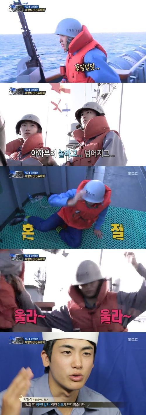 이날 박형식은 견시 부사수 임무를 수행하며 바다를 수호했다. 하지만 예고 없이 터지는 포탄에 다리에 힘이 풀리며 넘어지는 등 화들짝 놀라며 '아기 병사'다운 모습을 보였다.