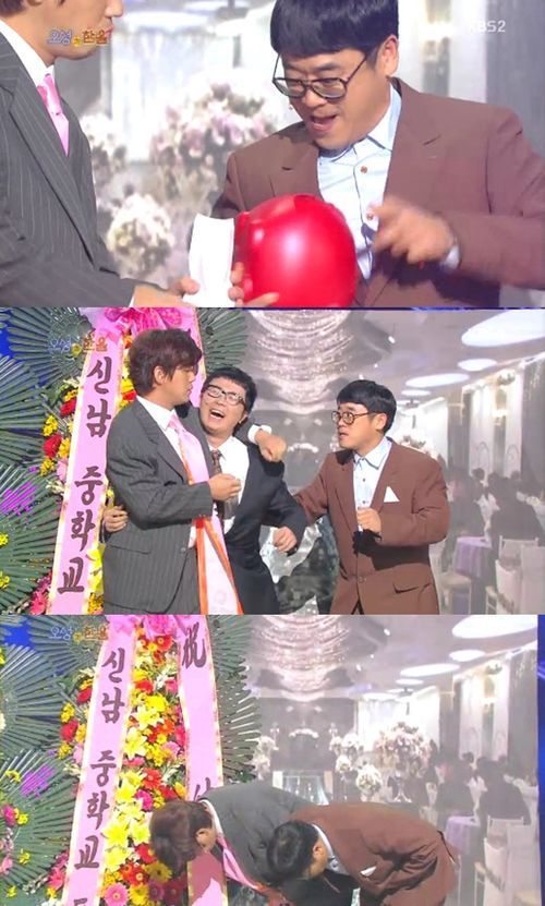 그러나 이날 코너의 대미는 오랜만에 만난 동창 앞에 돌변한 두 사람의 태도였다. 두 사람은 오랜만에 만난 친구를 괴롭히며 만나움을 표했지만, 친구가 S전자 인사과에 취직했다고 하자, 90도 인사를 해 쓴웃음을 자아냈다.